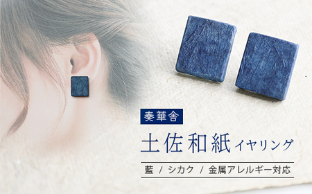 ふるさと納税 【奏華舎】〜装う土佐和紙〜 手漉き藍紙イヤリング(藍 / シカク / アレルギー対応) 高知県いの町