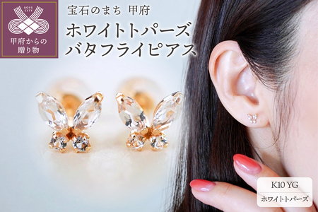 ふるさと納税 【ジュエリー】K10 イエローゴールド ホワイトトパーズ バタフライ 蝶 ピアス 保証書付 SE-2913 山梨県甲府市
