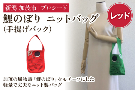 ふるさと納税 鯉のぼり ニットバッグ(手提げバック)【レッド】《タテ20×ヨコ15×マチ3.5(cm) 》 新潟県加茂市