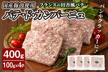 ふるさと納税 国産豚肉使用!パテドカンパーニュ 400g (100g×4パック) テリーヌ パテ シャルキュトリ パン クラッカー 豚レバー 手作り ワ.. 宮城県大和町