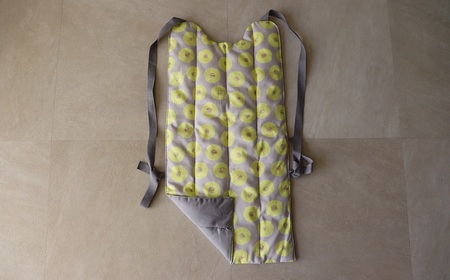 脱着もとても簡単にできます(両脇の紐をほどき、裾を引っ張るだけです)。
