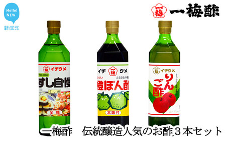 ふるさと納税 一梅酢 伝統醸造人気のお酢3本セット すし酢 ポン酢 リンゴ酢 お得 セット プロの味 国産 国内製造 愛媛県新居浜市