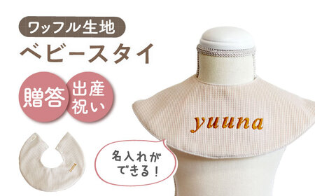ふるさと納税 【ベージュ×ブロンズ】【贈答・出産祝い】ワッフル生地 ベビースタイ〈名入れ可能・4色から選べる〉 [OCR049-3] 長崎県川棚町