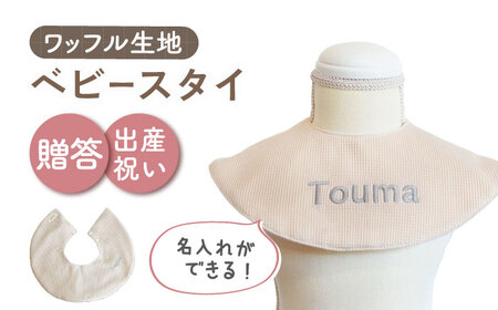 ふるさと納税 【ベージュ×シルバー】【贈答・出産祝い】ワッフル生地 ベビースタイ〈名入れ可能・4色から選べる〉 [OCR049-4] 長崎県川棚町