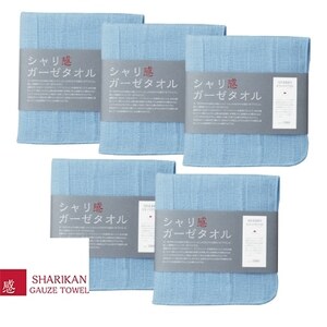 ふるさと納税 高吸水ガーゼハンカチ5枚(四重織シャリ感ガーゼ)色:ブルー【1210863】 大阪府和泉市