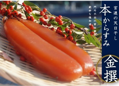 本からすみ 金撰 [ 高級珍味 ] 220g 以上 宮進商店謹製 冷蔵 国産 原料 使用 カラスミ 唐墨 高級 珍味 酒の肴 つまみ 魚卵 高知 真空 日本酒 ボラ 鯔 贈答 ギフト 贈り物 祝い 記念日 お歳暮 お年賀 正月 MS010