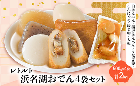 ふるさと納税 浜名湖おでん4袋セット 白はんぺん 揚げはんぺん さつま揚げ うなぎ巻 こんにゃく ゆで卵 大根 500g×4袋 計2kg 静岡県浜松市