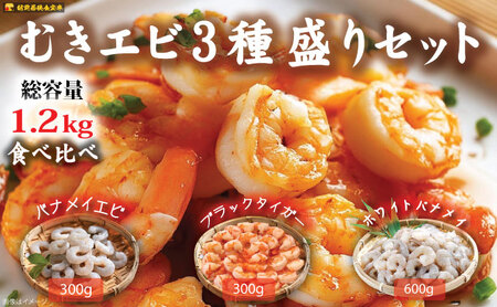 ふるさと納税 越前若狭食宝庫の冷凍むきえび「豪華3種盛りセット」合計1.2kg えび エビ 海老 ブラックタイガー バナメイエビ ぷりぷり 冷凍 殻な.. 福井県若狭町