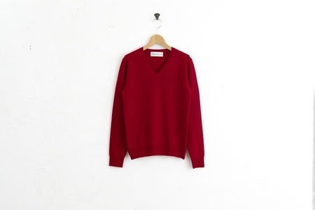 度詰のシンプルなVネックのニット。 度詰(どつめ)は、編む際の目の間隔を詰めて編み上げられた、という意味。 編み目がしっかり詰んでいて型くずれしにくい製品に仕上がり。 着用するうちに柔らかくしなやかな風合いが増します。