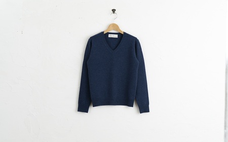 度詰のシンプルなVネックのニット。 度詰(どつめ)は、編む際の目の間隔を詰めて編み上げられた、という意味。 編み目がしっかり詰んでいて型くずれしにくい製品に仕上がり。 着用するうちに柔らかくしなやかな風合いが増します。
