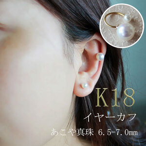 真珠 パール イヤーカフ アクセサリー K18 18K 18金 金18 6.5mm 6.5ミリ 7mm 7ミリ 貝 アコヤ貝 アコヤ真珠 三重 伊勢志摩 伊勢 志摩 ケース 照り 冠婚葬祭 結婚式 ジュエリー