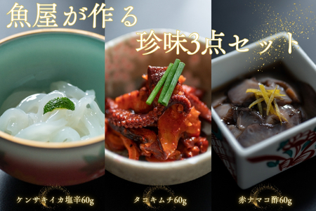 ふるさと納税 魚屋が作る 珍味3点セット 剣先イカ塩辛 赤ナマコ酢 タコキムチ 冷凍 山口県 長門市 仙崎 国産 配送日指定 日時指定 (10132) 山口県長門市