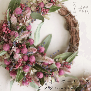 ふるさと納税 富良野 花七曜 大きなセミオーダーリース * ピンク ドライフラワー ◆ ハーフムーン 花 インテリア 雑貨 植物 母の日 ギフト .. 北海道上富良野町