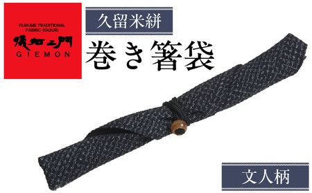 ふるさと納税 久留米絣 巻き箸袋 (文人柄)_久留米絣 巻き箸袋 文人柄 1個 箸キャップ 付属 SDGs エコ マイ箸 レトロ感 箸 箸袋 箸入れ 日本.. 福岡県久留米市