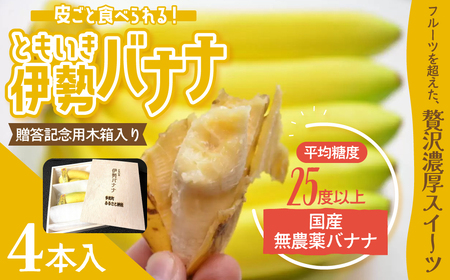 ふるさと納税 平均糖度25度以上 国産 無農薬 皮ごと食べられる「ともいき伊勢バナナ」 贈答記念用木箱入り 4本入り 約400g 4本入り バナナ ば.. 三重県多気町