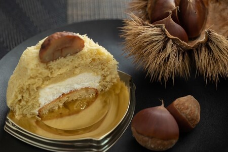 底にはダマンドケーキ、その上に生クリームを絞り、外側を丹波栗ペーストで覆っています。