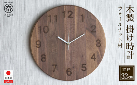 ふるさと納税 掛け時計 木の時計 木製 ウォールナット 丸形 大サイズ 直径32cm アナログ 掛時計 福岡県大川市