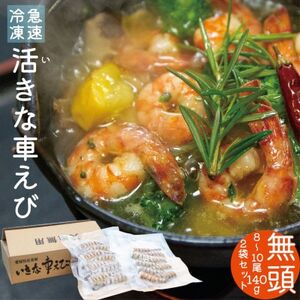 ふるさと納税 急速冷凍活きな車えび【無頭8〜10尾(約140g)×2袋セット】【配送不可地域:離島】【1576841】 愛媛県上島町