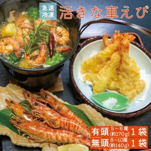 ・冷凍活きな車えび[各1セット【有頭5〜6尾(約170g)】【無頭8〜10尾(約140g)】]
