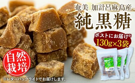 ふるさと納税 【ポストにお届け】『純黒糖』<自然栽培>奄美 加計呂麻島(130g×3袋) 鹿児島県瀬戸内町