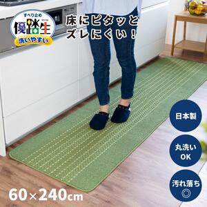 ふるさと納税 【ライトグリーン】優踏生 洗いやすい キッチンマット 約60cm×240cm 洗える 滑り止め 防汚 和歌山県海南市
