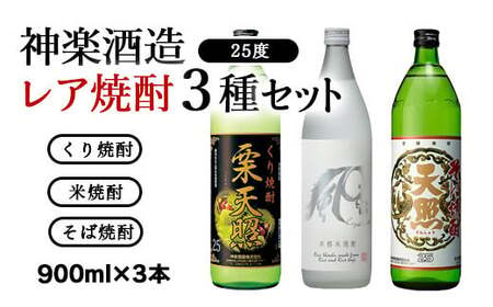神楽酒造25°焼酎のレアな3種類をセットにしております。