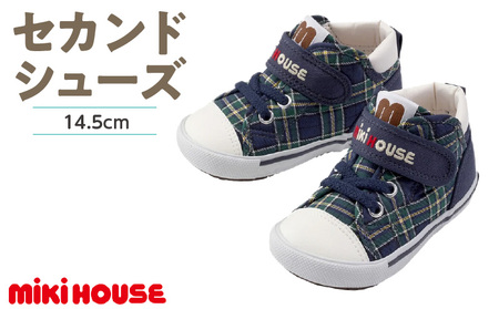 ふるさと納税 ミキハウス セカンドベビーシューズ チェック柄(紺・14.5cm)_Sx019-2 福岡県久留米市