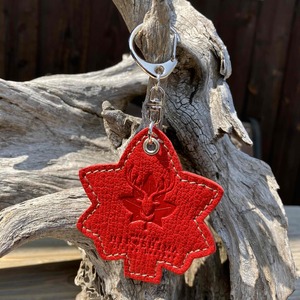 広島県の美しい自然の象徴「もみじ」をモチーフにした、東広島産ジビエレザー鹿革製のキーホルダーです。