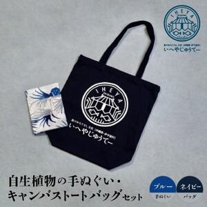 ふるさと納税 自生植物の手ぬぐい(ブルー)と【キャンバストートバッグ】ネイビー【1505135】 沖縄県伊平屋村