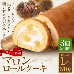 ふるさと納税 【3ヶ月定期便】ボヌール特製 マロンロールケーキ 1本 約510g ロールケーキ ケーキ スイーツ 栗 マロン 洋菓子 お菓子 おやつ 冷凍 福岡県糸田町