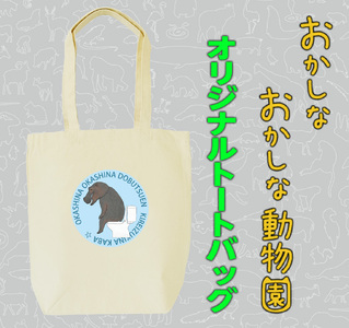 由仁町在住の絵本作家 おおはしまさし氏の絵本「おかしなおかしな動物園」より『キレイ好きなカバ』のかわいいトートバッグです。