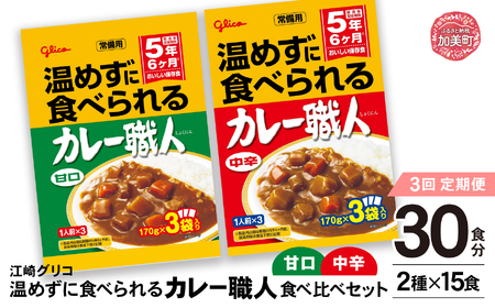 ふるさと納税 【定期便3回】グリコ 温めずに食べられるカレー職人 ( 甘口 ・ 中辛 ) 食べ比べ 30食 ( 2種 × 15食 )セット |非常食セッ.. 宮城県加美町