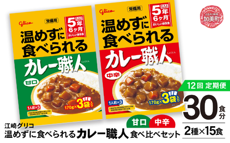 ふるさと納税 【定期便12回】グリコ 温めずに食べられるカレー職人 ( 甘口 ・ 中辛 ) 食べ比べ 30食 ( 2種 × 15食 )セット |非常食セ.. 宮城県加美町