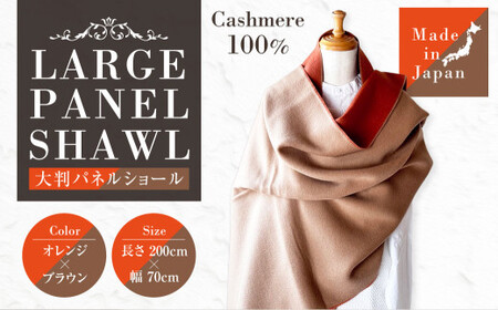 ふるさと納税 日本製 カシミヤ100% 大判パネルショール BRオレンジ/Nブラウン RF614 茨城県守谷市