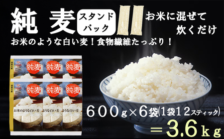 ふるさと納税 【はくばく】純麦スタンドパック 6袋(1袋600g) 純麦 国産大麦 食物繊維 麦 むぎ むぎご飯 麦ごはん 麦ご飯 ファイバー.. 山梨県富士川町