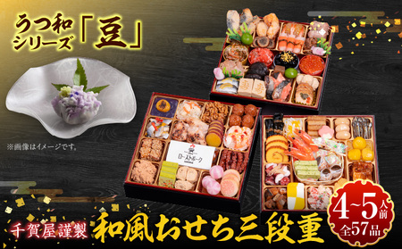 ふるさと納税 うつ和シリーズ「豆」 と 千賀屋謹製 迎春おせち料理 和風三段重「おもてなし」セット[035S06-C]冷蔵おせち 取り皿 愛知県小牧市