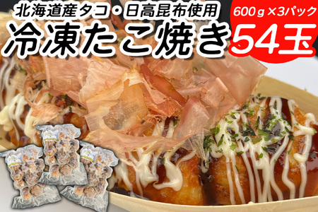 ふるさと納税 北海道産 たこ 使用 ほっぺ の たこ焼 54玉 ( 600g × 3袋 ) 日高昆布 使用 たこやき まだこ 冷凍 レンチン 北海道新ひだか町