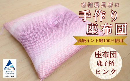 ふるさと納税 老舗寝具店の手作り座布団 鹿の子柄 45×45 高級インド綿100%を使用【ピンク】 石川県小松市
