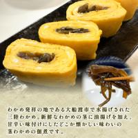 新鮮な三陸産の茎わかめを使用し、じっくりと煮込むことで、やさしい味わいと柔らかな食感に仕上げております。