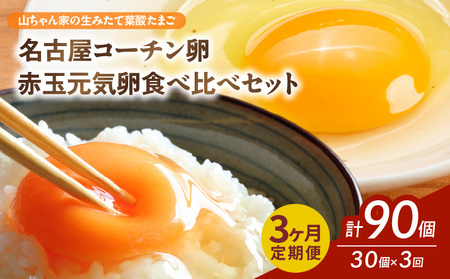 ふるさと納税 【3ヶ月定期便】【山ちゃん家の生みたて葉酸たまご】名古屋コーチン卵・赤玉元気卵 食べ比べセット(各15個 合計30個入り)[132Y0.. 愛知県小牧市