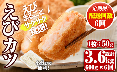 ふるさと納税 <定期便・毎月6回>えびたっぷりえびカツ(1枚:50g)(総計3.6kg)海老 えび えびカツ たっぷり 簡単 惣菜 お弁当 おかず おつまみ .. 大分県宇佐市