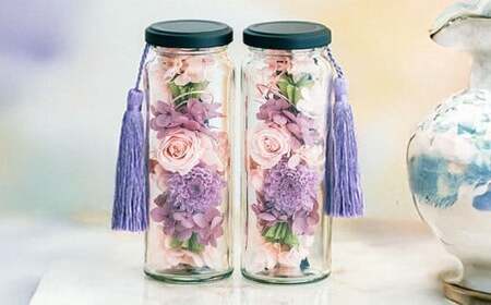 手入れ不要の綺麗なお花、大切な方へのお供えに最適、プリザーブドフラワーのお供えボトル2本セット。