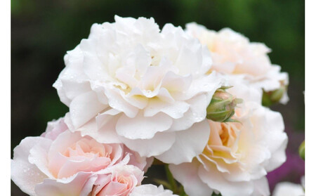 特徴:かわいらしい丸弁の花びらは、咲き進むにつれて中心がくしゃくしゃになり、その様子は髪をまとめるヘアアクセサリーのよう。やわらかなアプリコットピンク色〜クリーム色への花色の変化が楽しめる。