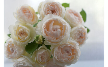 特徴:クリームホワイトにほんのりピンクがかかるロマンティックなカップ咲き。