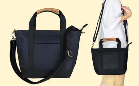 ふるさと納税 ワックス ショルダートートバッグ 帆布 本革持手 2way ブラック WZ003-1 福岡県篠栗町