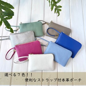 丈夫で傷のつきにくいイタリアンレザーを使用したストラップ付きのポーチです。