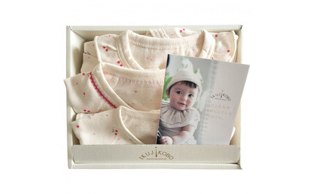 オーガニックコットンを原料にした国内生産の別注生地を使ったベビー服のセットです。かわいらしさが人気のさくらんぼをモチーフにしたプリントをした3つのアイテムをセットにしました。新しいご家族をお迎えする方の出産準備品として、お祝いの気持ちを伝えるギフトとしてお使いいただけます。