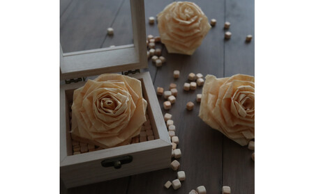 開けるたびにふわりと広がる、清々しい檜の香り。繊細なバラの花は、手作業で丁寧に仕上げました。