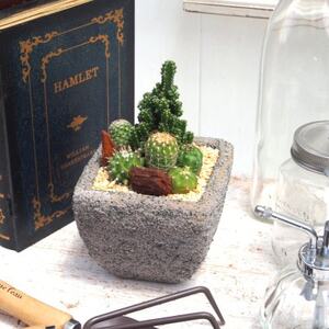 ふるさと納税 サボテンミックスセメントポット仕立て1個【配送不可地域:離島・沖縄県】【1697814】 京都府久御山町