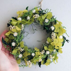 ※つる製のベースにお花やグリーンをひとつずつつけて手作りしていますので、形や大きさ、色に個性があります。